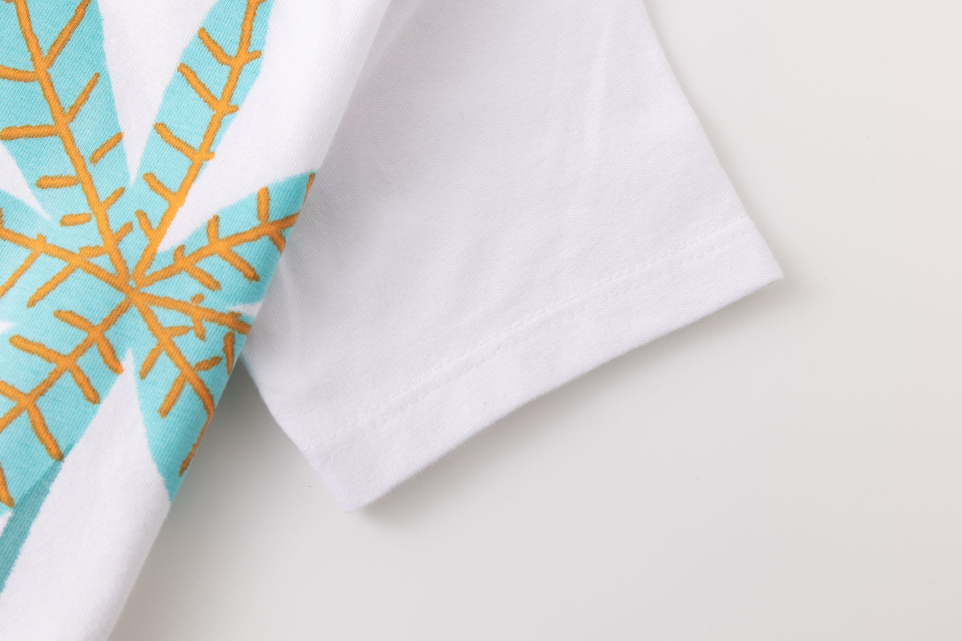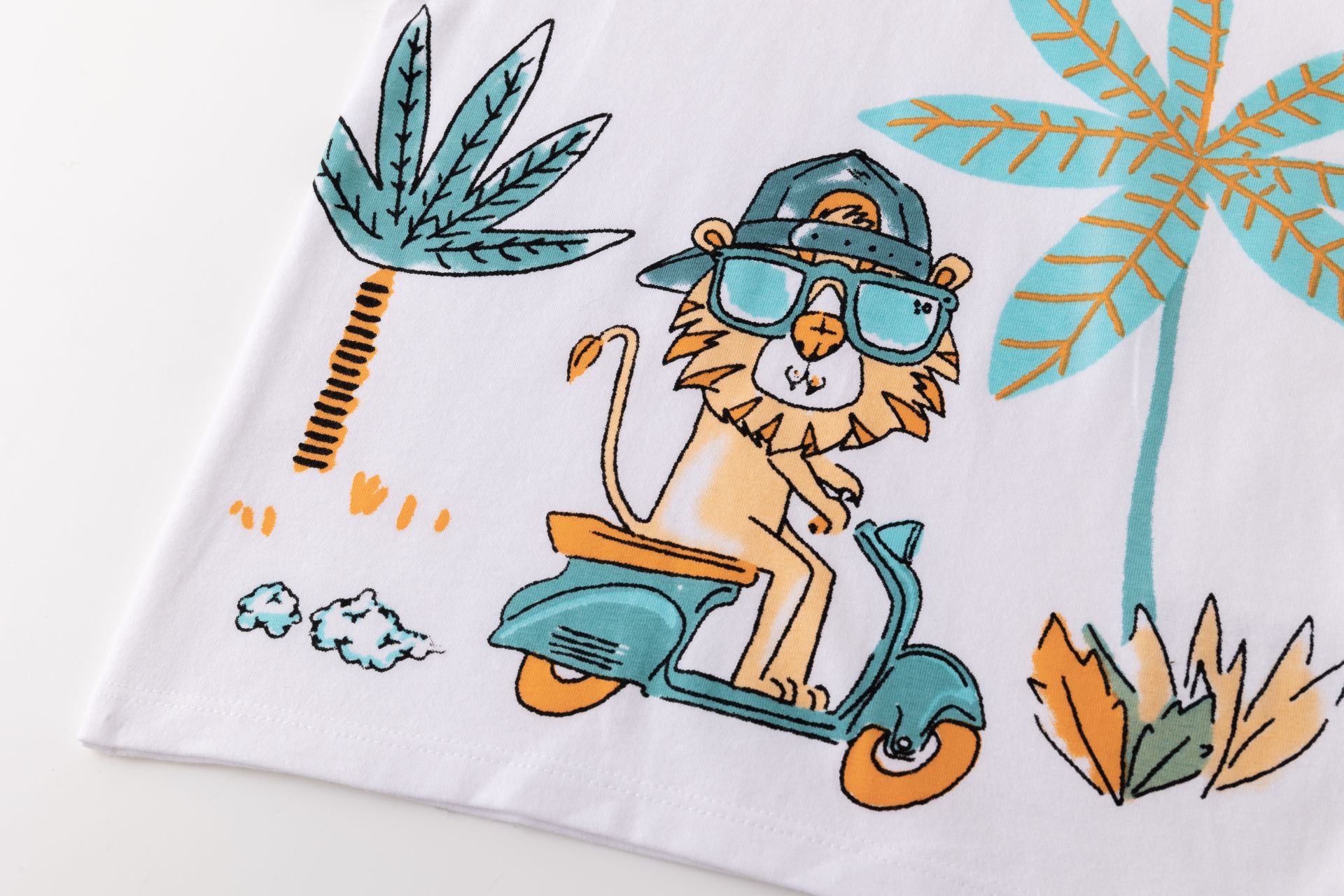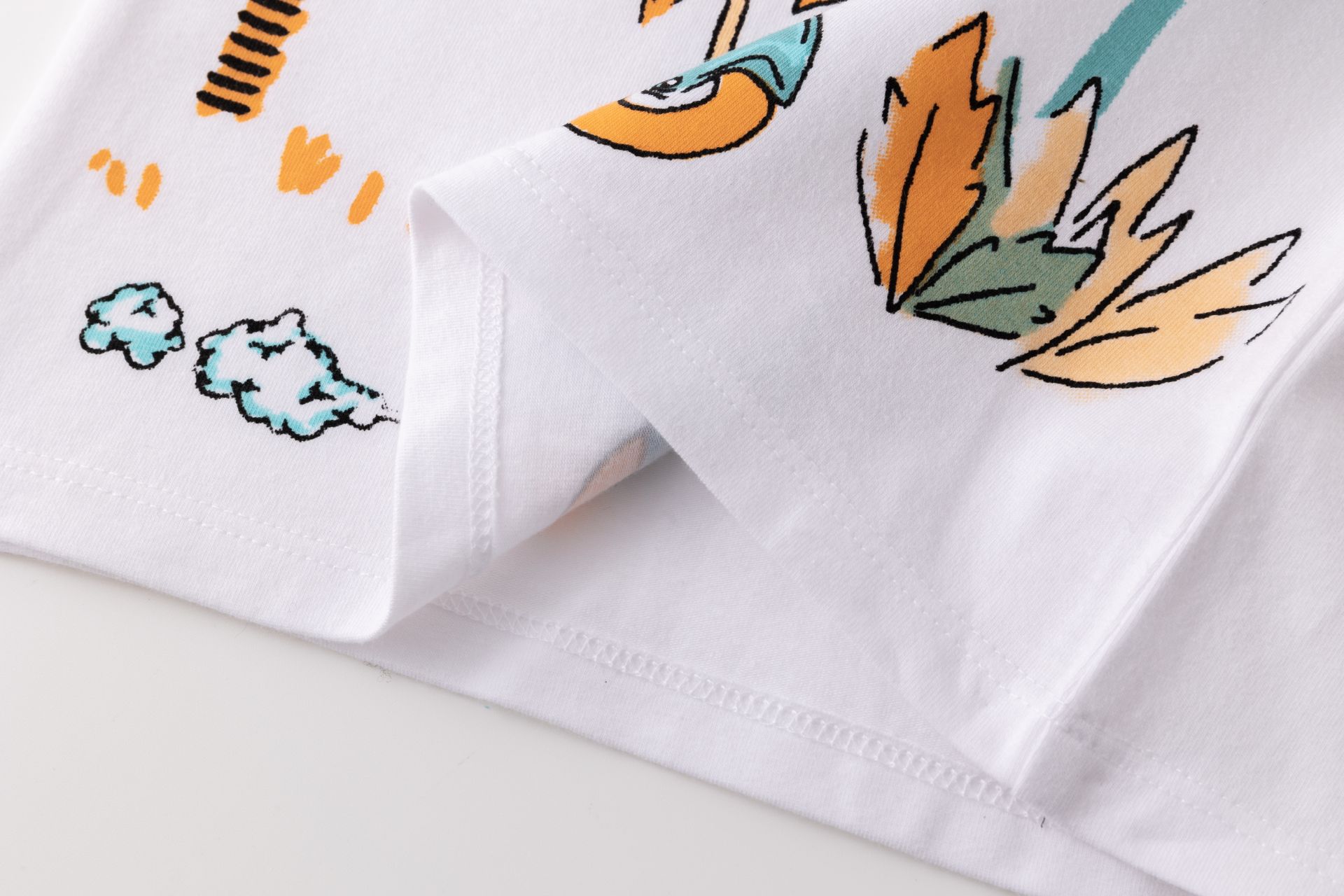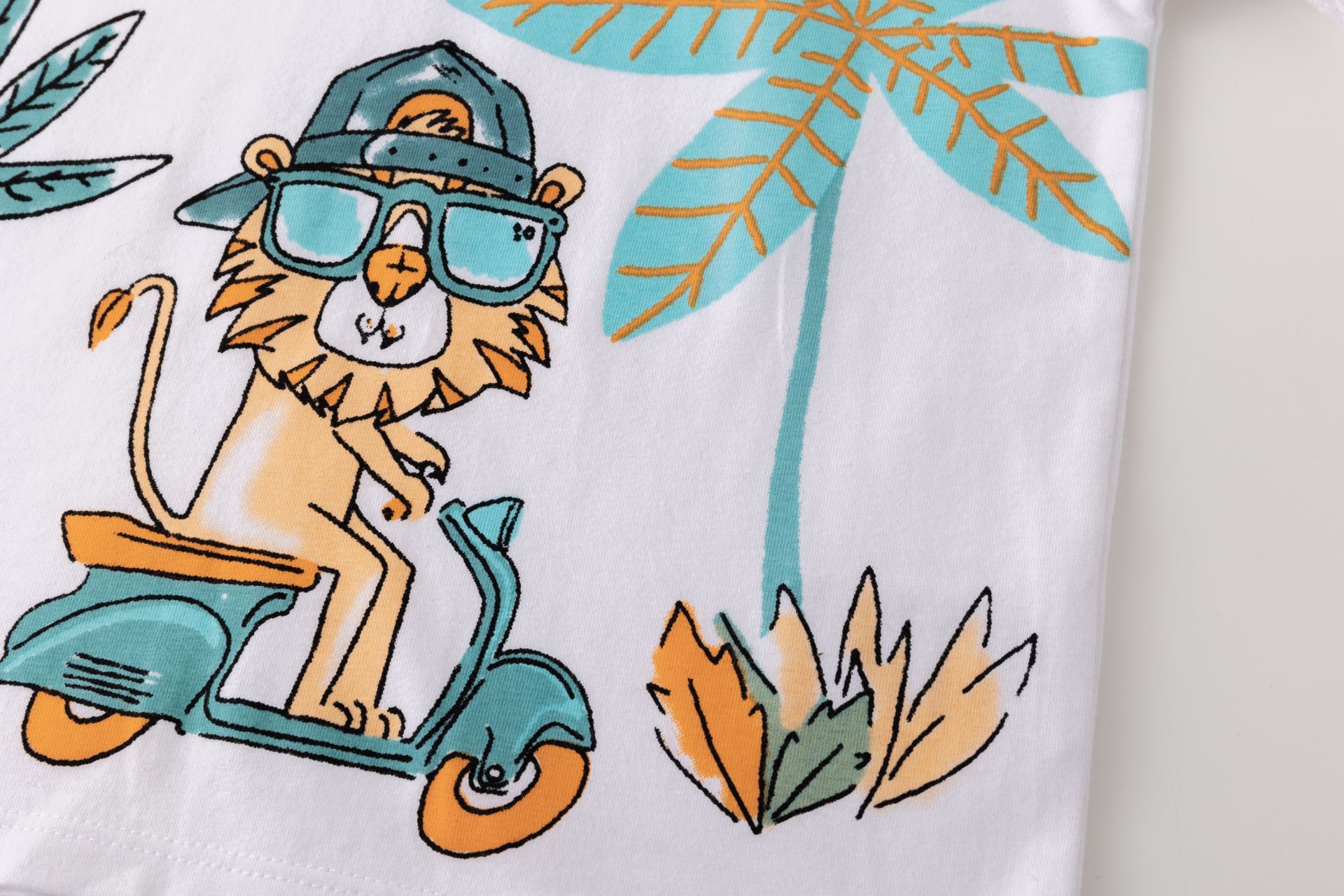 Camiseta bebé niño de manga corta y cuello a la caja. Abertura de corchetes en hombro. Con estampado al agua en delantero.
