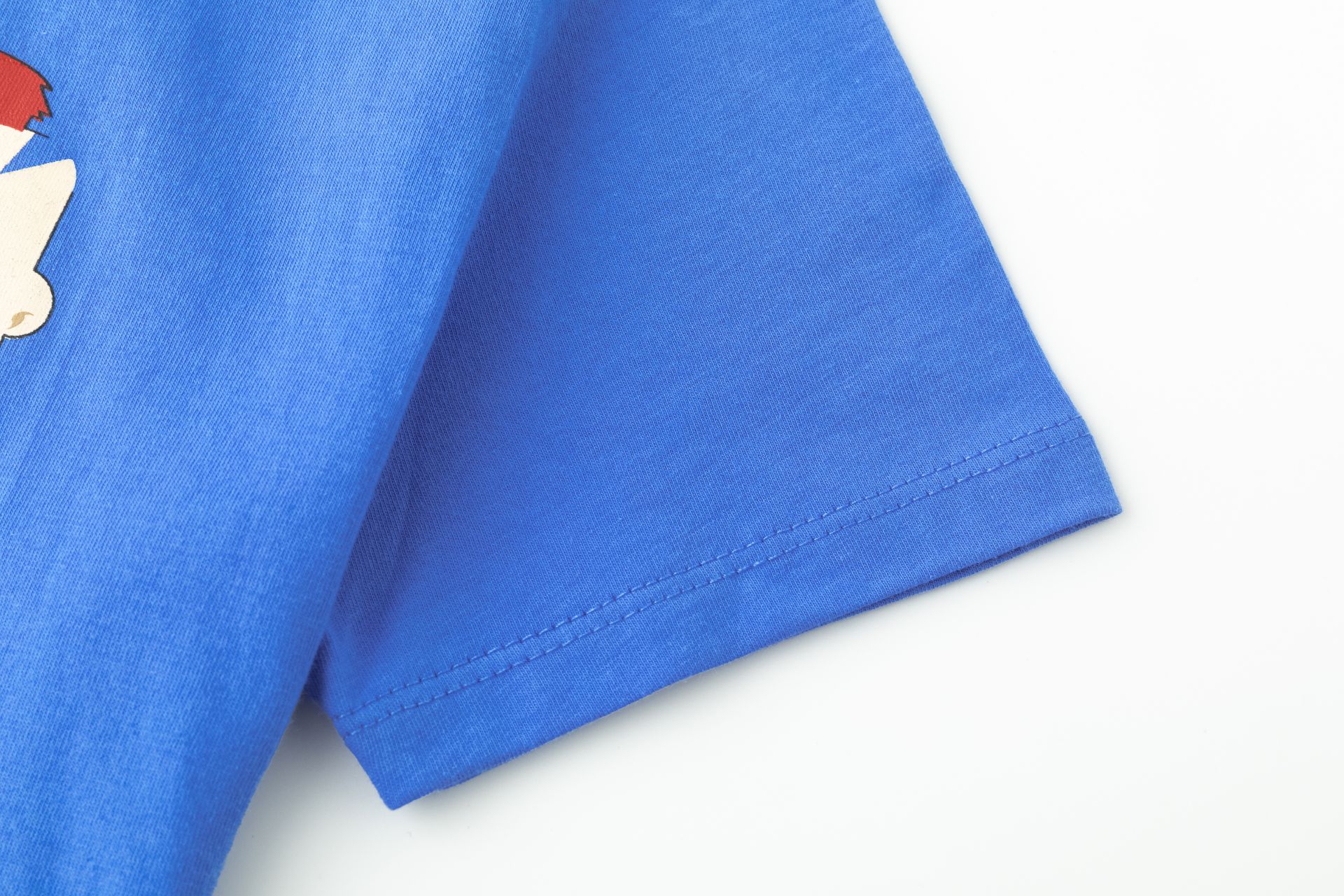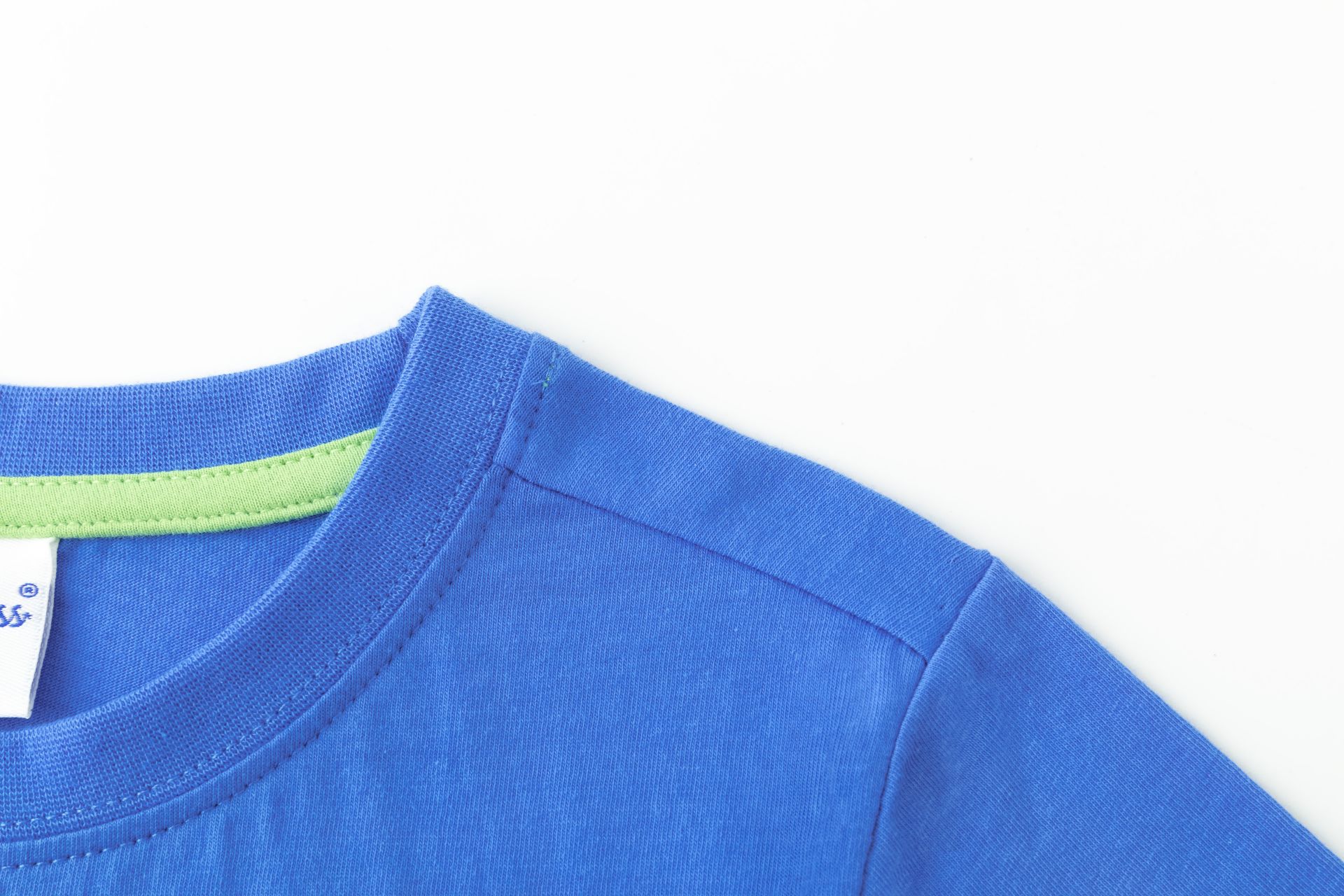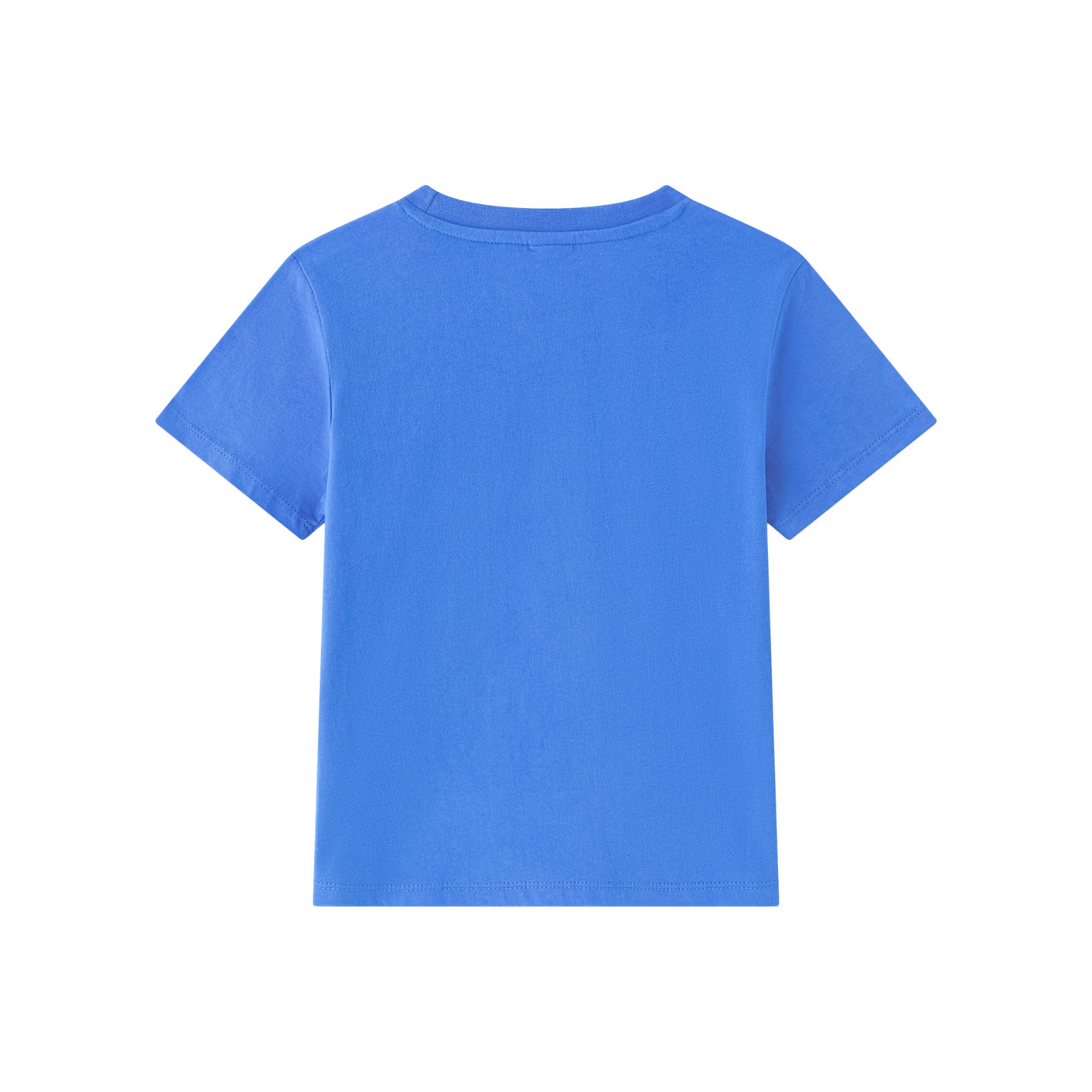 Camiseta algodón de niño de manga corta y cuello a la caja. Estampado al agua en centro.