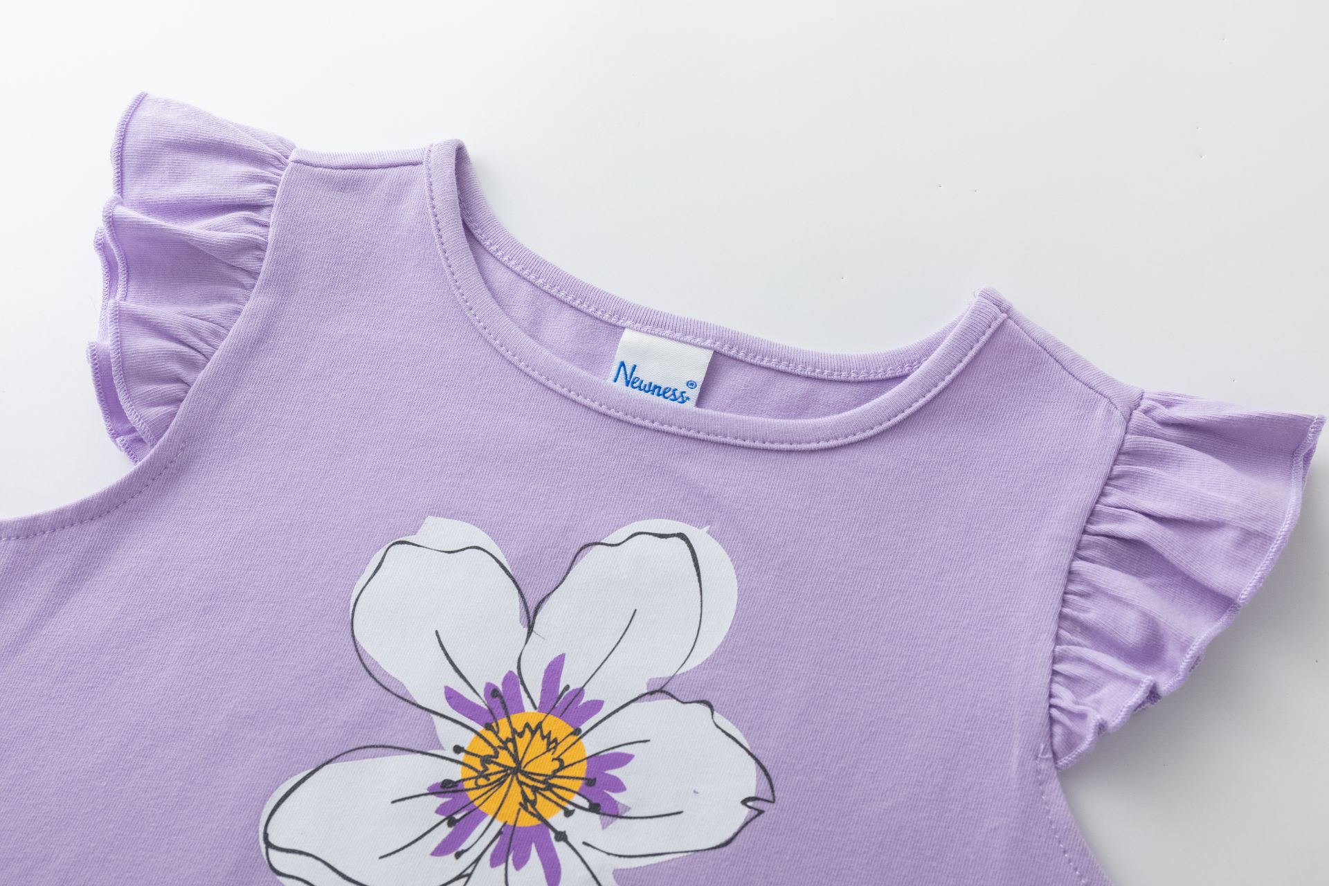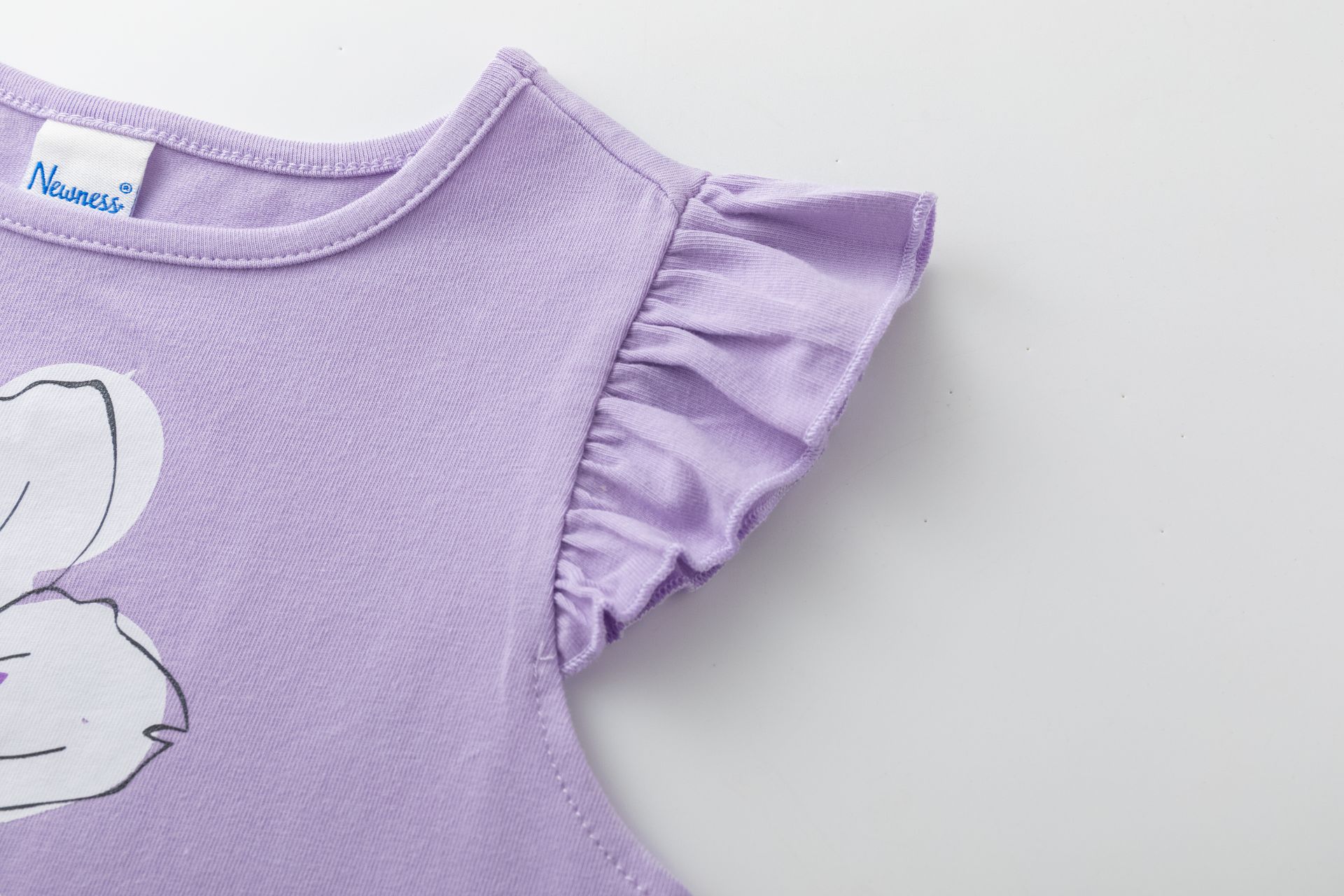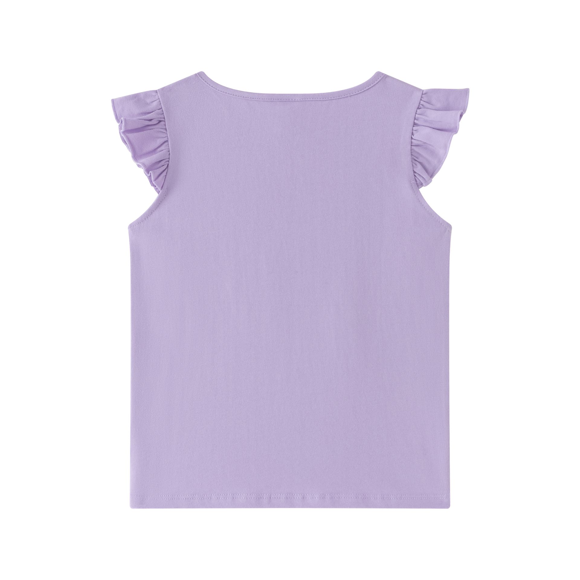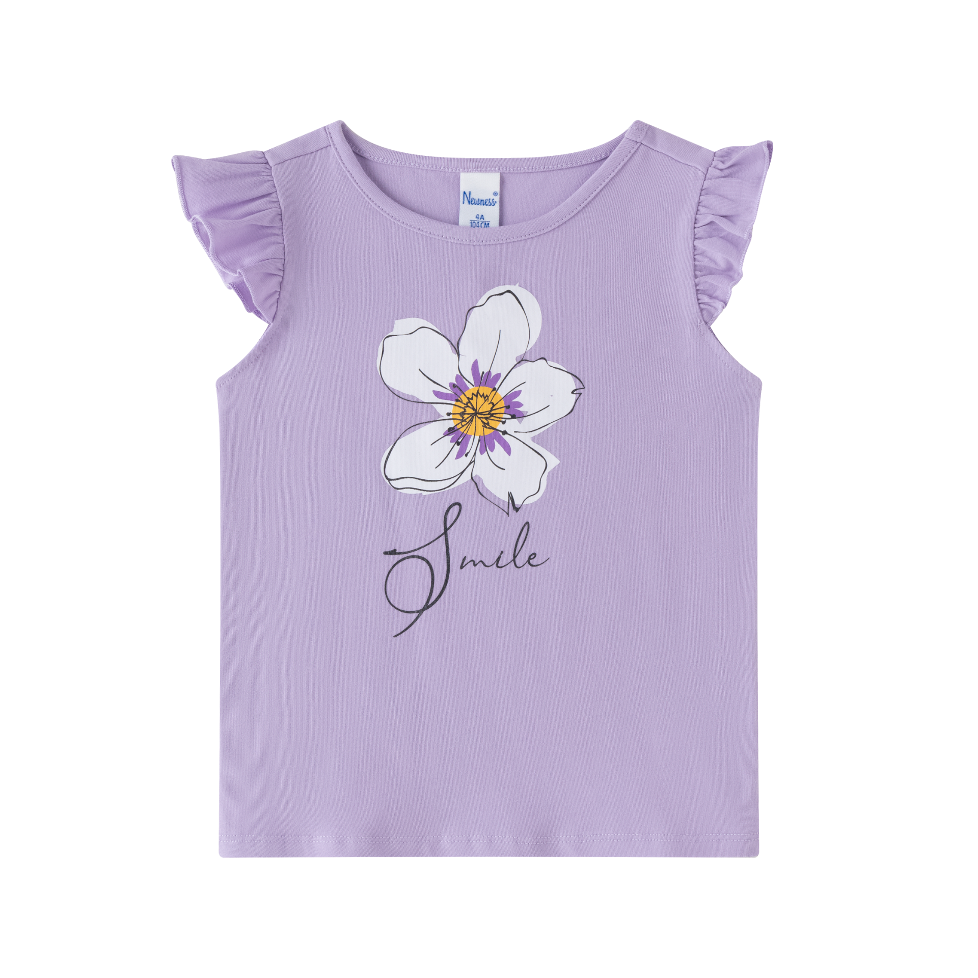 Camiseta de algodón de niña, de tirantes con volante. Estampado al agua en centro.