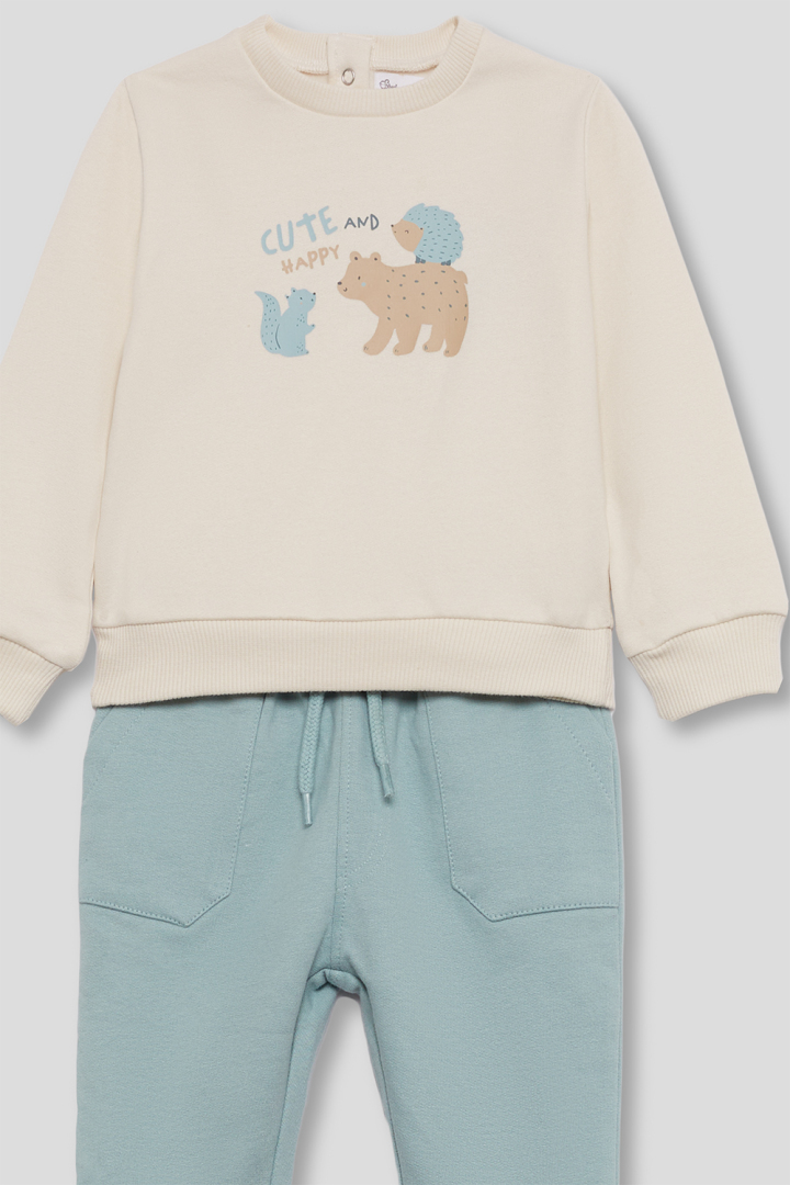 Este conjunto Street Monkey con felpa interior mezcla ternura y actitud urbana a partes iguales.