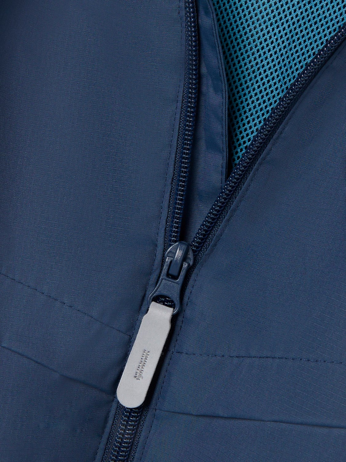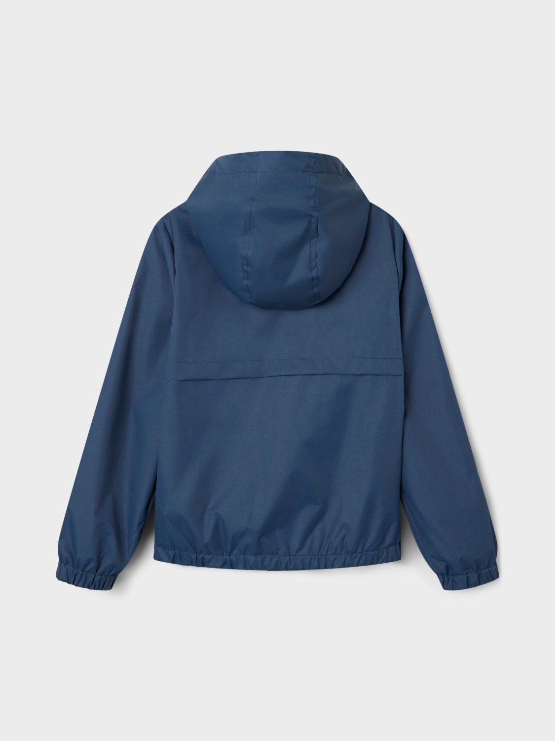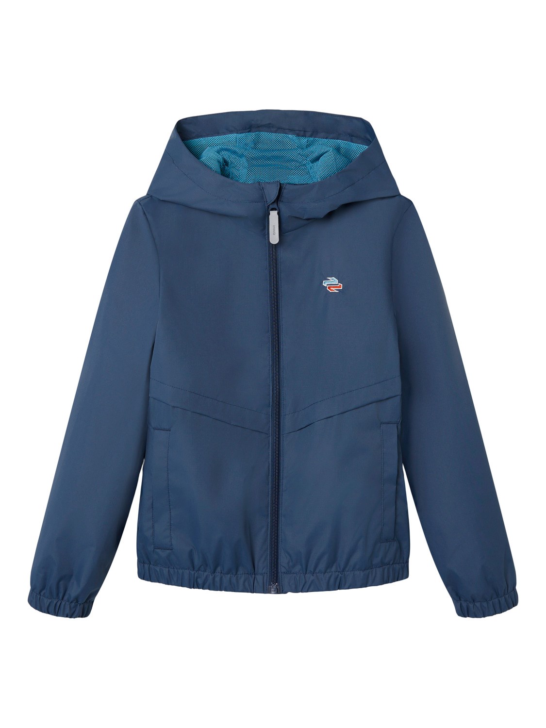 Cortavientos azul con capucha. Bolsillos funcionales.