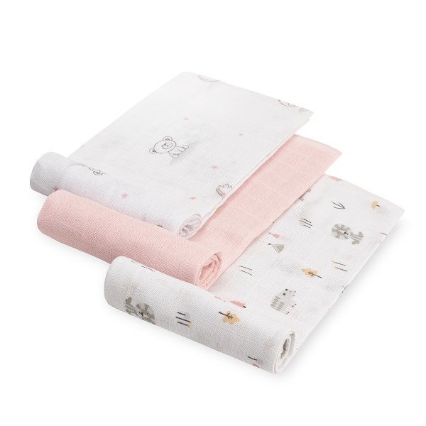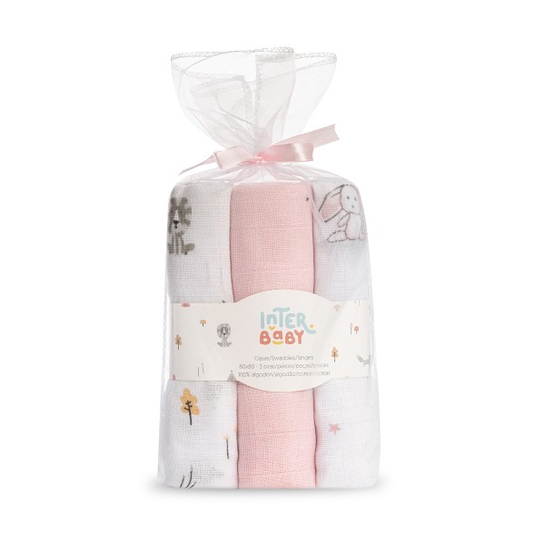 Gasas 80×80 pack de 3 bosque rosa