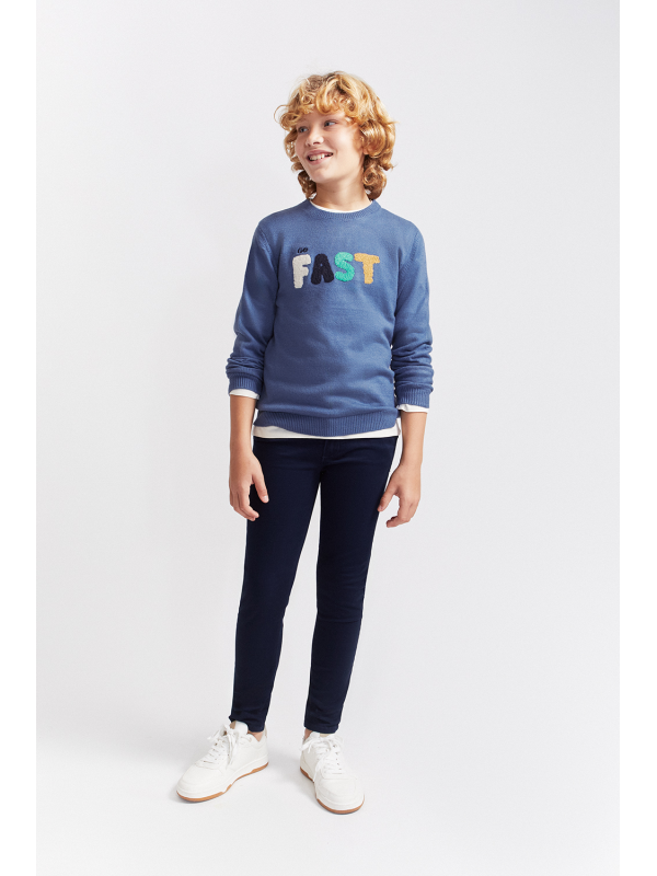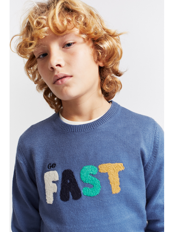 Este jersey azul es perfecto para pequeños que no paran quietos. Con su divertido mensaje “GO FAST” en letras coloridas y textura suave, invita a correr, saltar y vivir aventuras sin perder el estilo. Cómodo, calentito y con mucho rollo, es ideal para los días frescos en los que la imaginación va a toda velocidad. 🚀