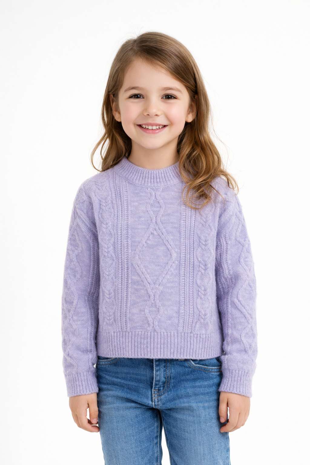 Este suéter de punto trenzado en un delicado tono lila es ese amigo fiel que te acompaña en los días fresquitos —calentito, suave y con mucho encanto. Su diseño clásico de ochos se mezcla con un corte moderno que lo convierte en un imprescindible del armario.