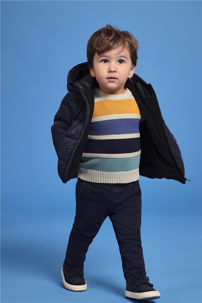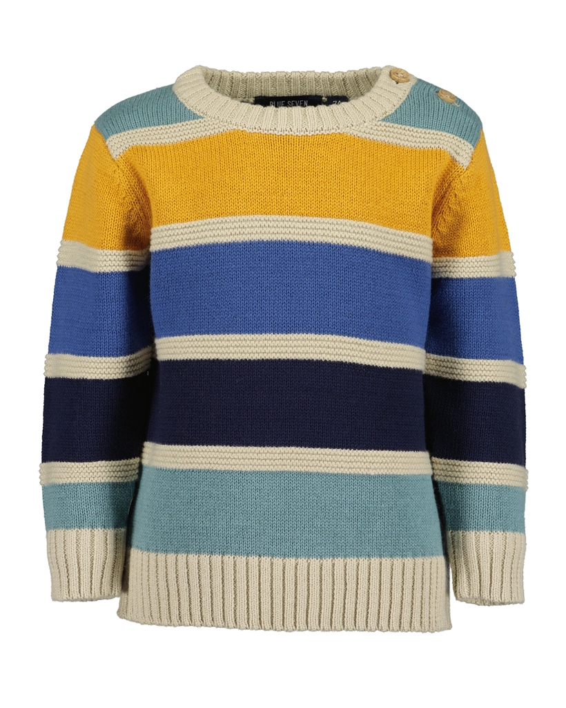 Jersey listado para bebé. Abotonado en el hombro para facilitar la puesta.