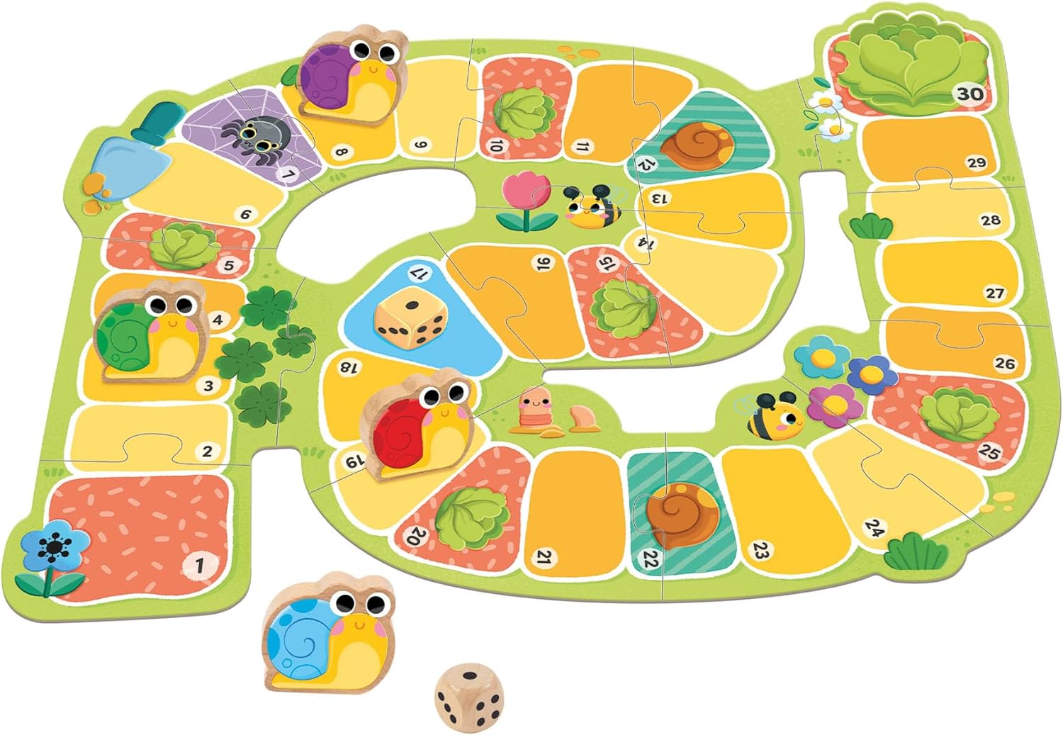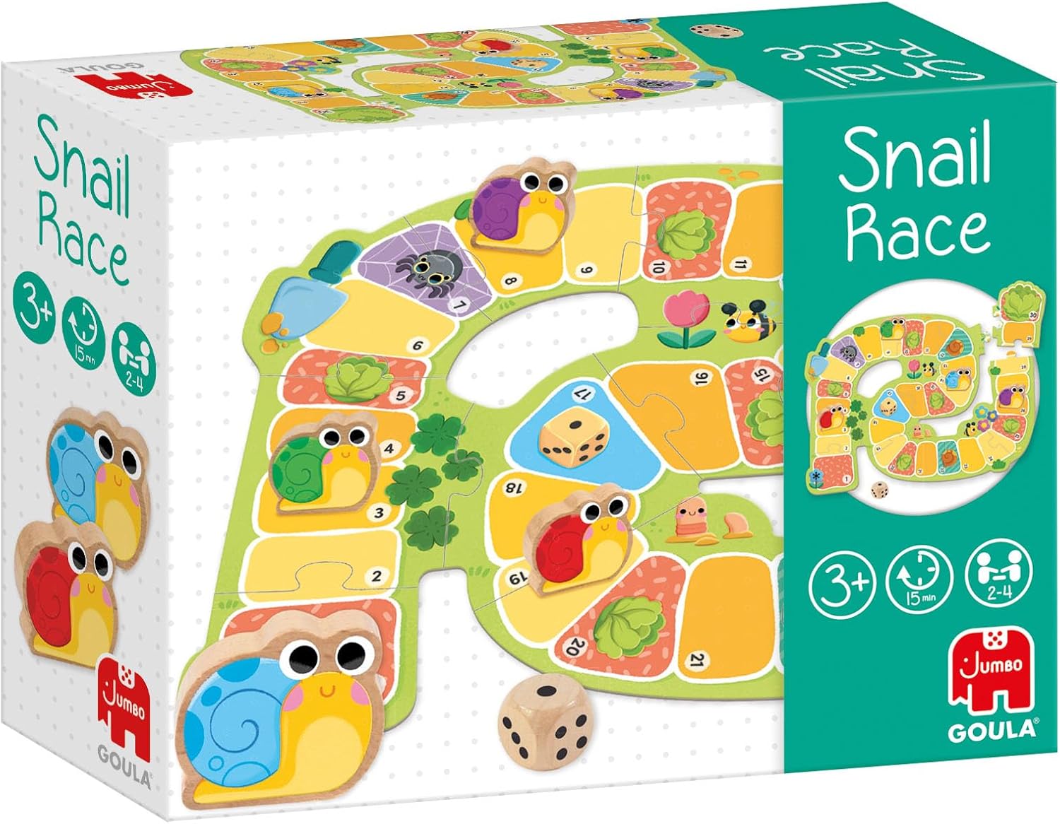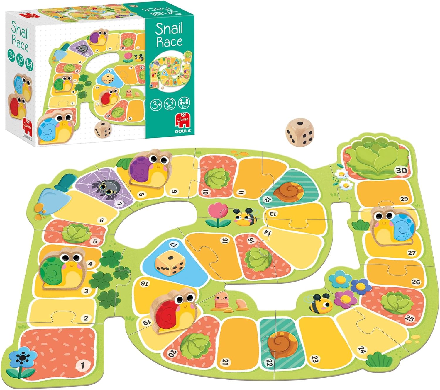 El juego “Snail Race” de Goula es un encantador juego de mesa diseñado para niñas y niños a partir de los tres años. Este juego no solo ofrece diversión, sino que también promueve habilidades cognitivas y sociales esenciales. Consta de un tablero de cartón resistente y colorido, cuatro piezas de caracol de madera y un dado, todo cuidadosamente diseñado para manos pequeñas. “Snail Race” es ideal tanto para juegos cooperativos como competitivos, permitiendo que los pequeños aprendan a trabajar en equipo o a disfrutar de una competencia amistosa.
