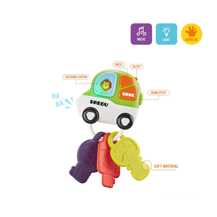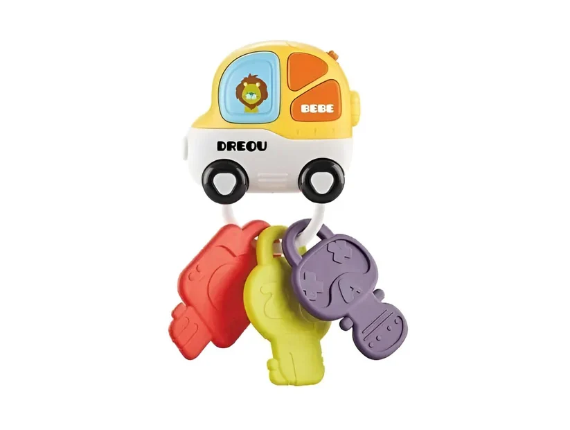 Este colgante musical de coche tiene forma de coche con la ilustración de un león como conductor, tres teclas funcionales de goma suave y colores vibrantes. Al pulsar uno de los tres botones musicales del coche, se reproducen efectos de sonido y luz.