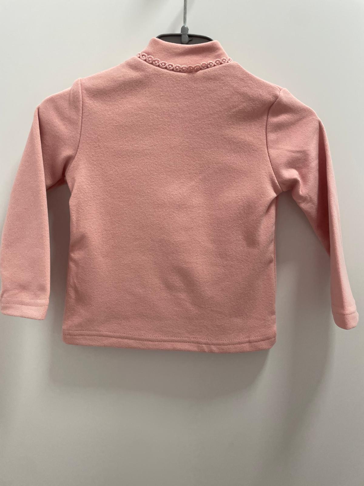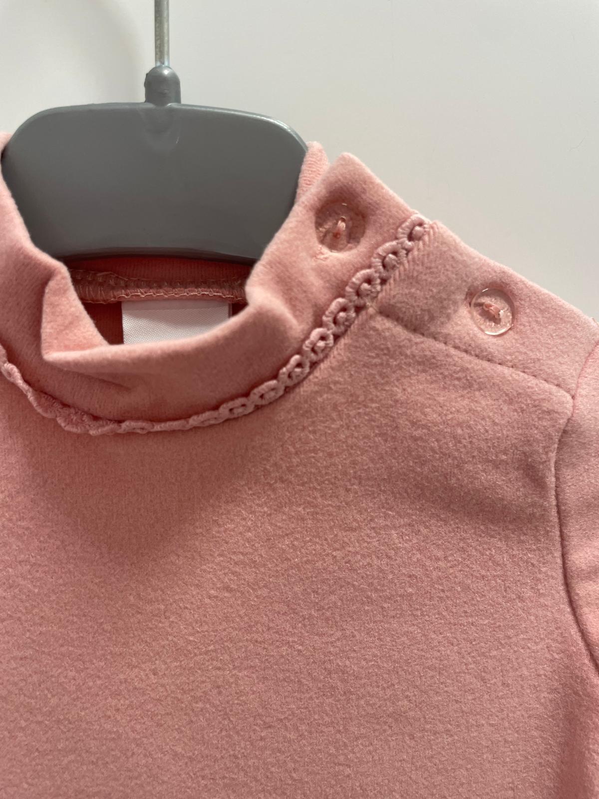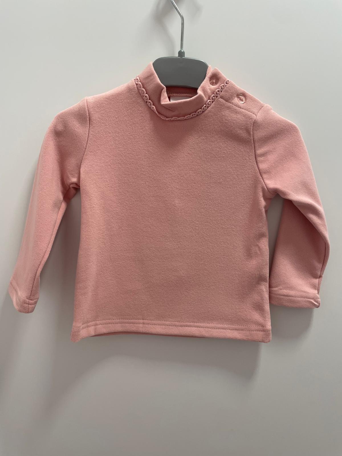 👚 Camiseta de manga larga rosa con cuello vuelto y detalles de puntilla