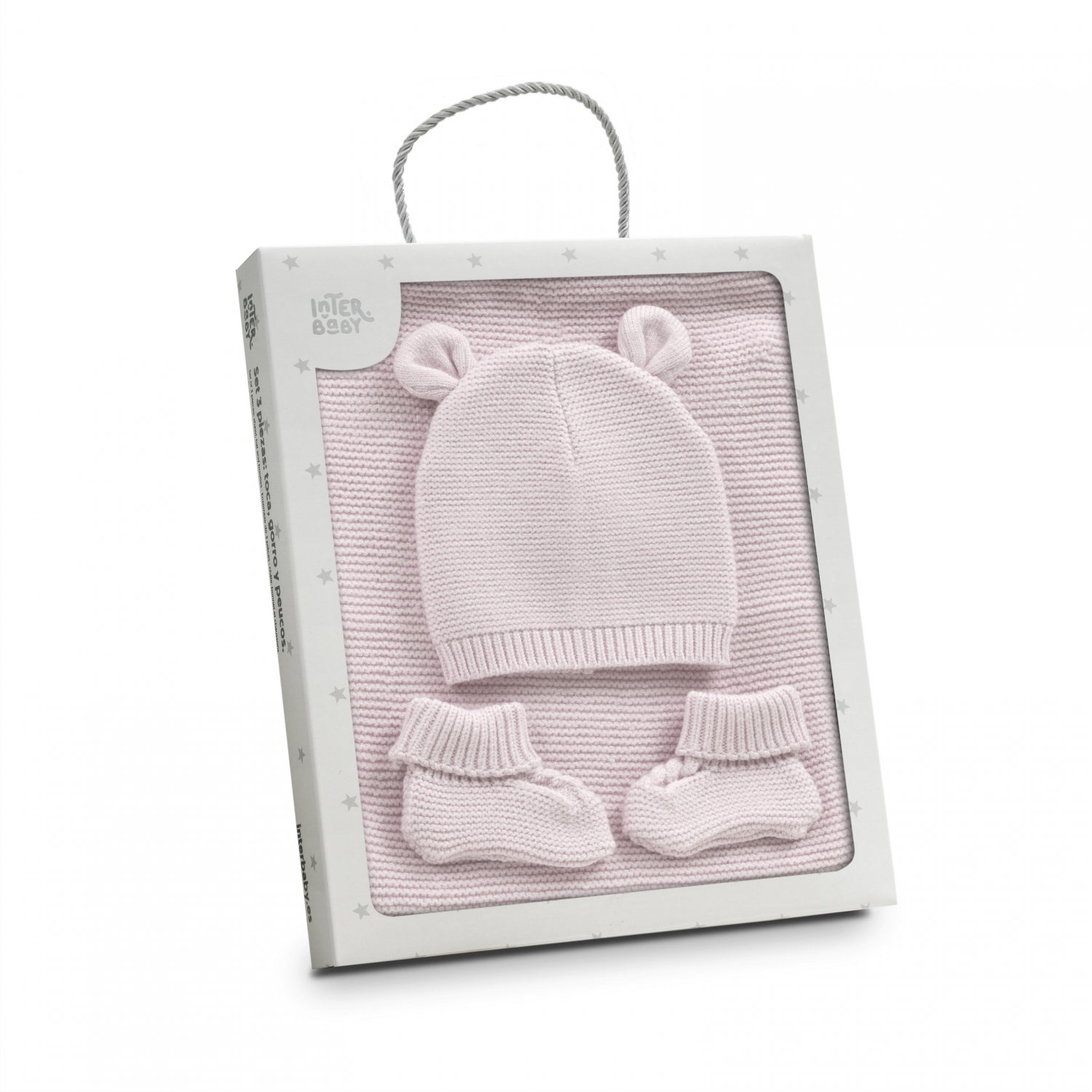 Set de regalo toca, gorro y patucos rosa
