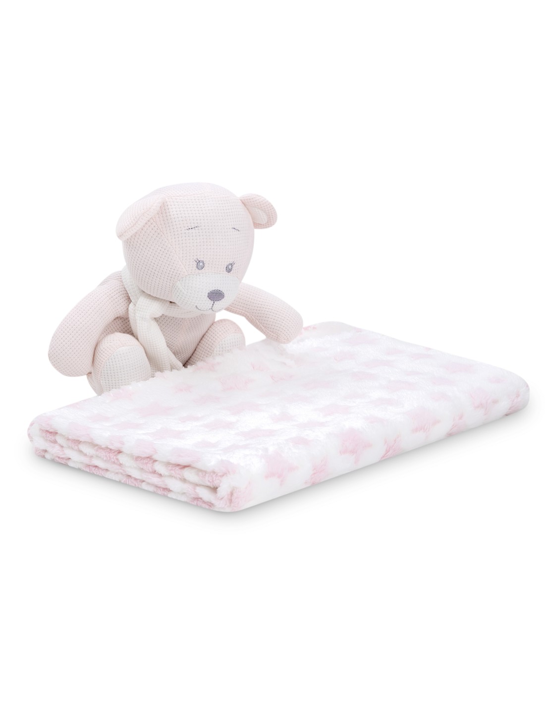 Set peluche algodón Oso + manta estrellas. Manta 80×100 cm + peluche 29 cm
