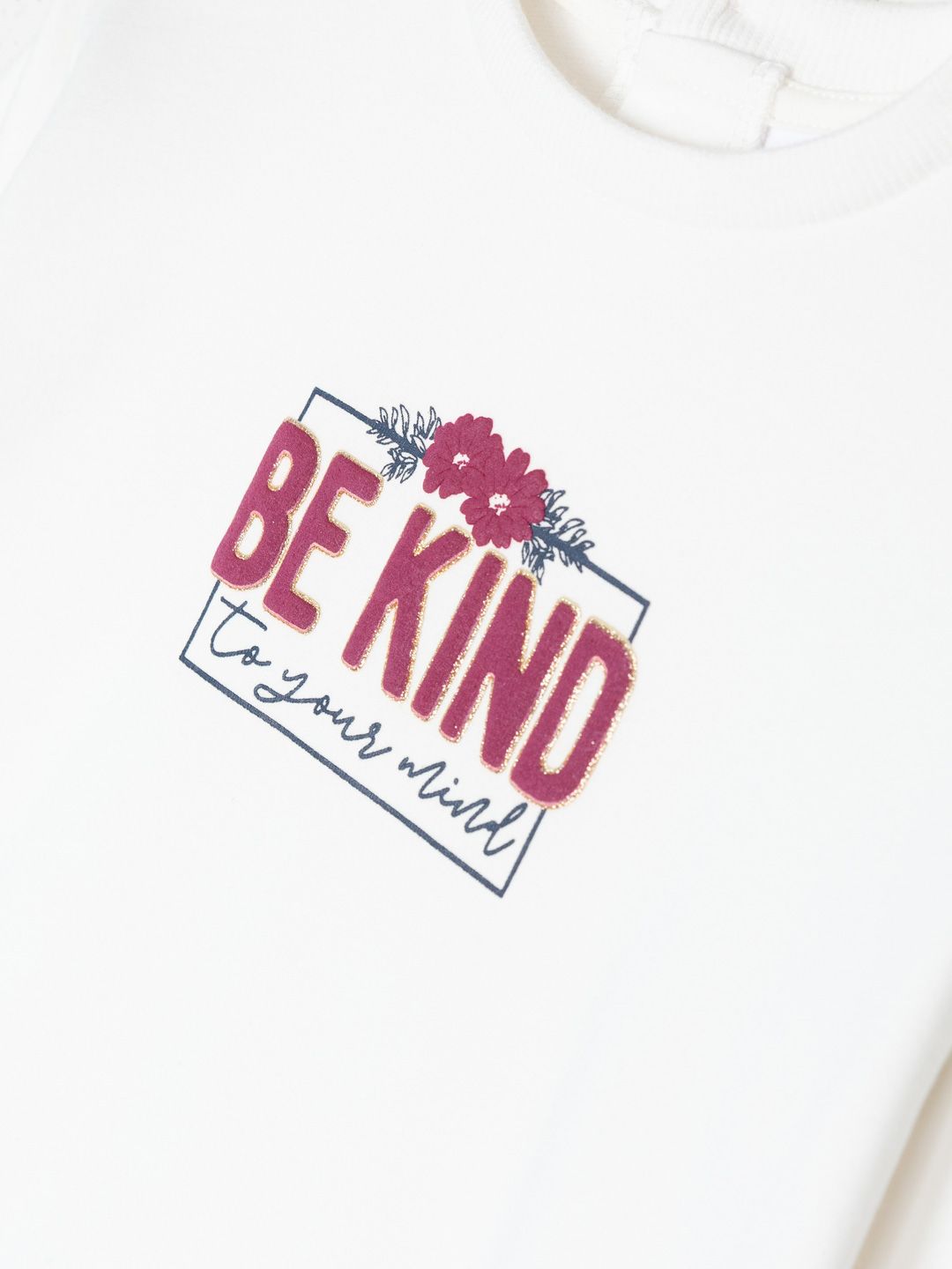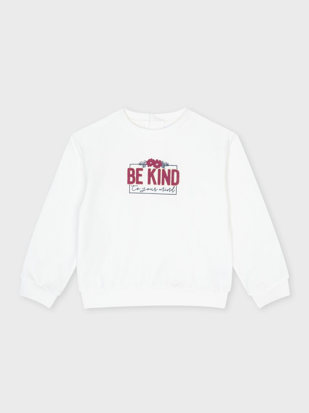 Esta sudadera para niña, en un bonito tono blanco, lleva un mensaje positivo estampado: “BE KIND to your mind”. Este diseño inspirador es acompañado de detalles gráficos sutiles, añadiendo un toque de estilo a una prenda cómoda y acogedora. Con un corte clásico y puños elásticos, es perfecta para mantener a tu pequeña cómoda mientras transmite un mensaje de bondad. Ideal para el día a día, esta sudadera es fácil de combinar y perfecta para los días frescos. ¡Una opción divertida y llena de positividad!