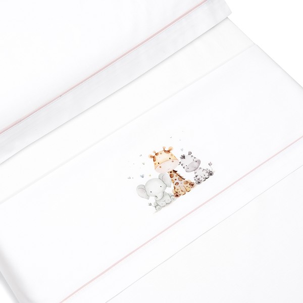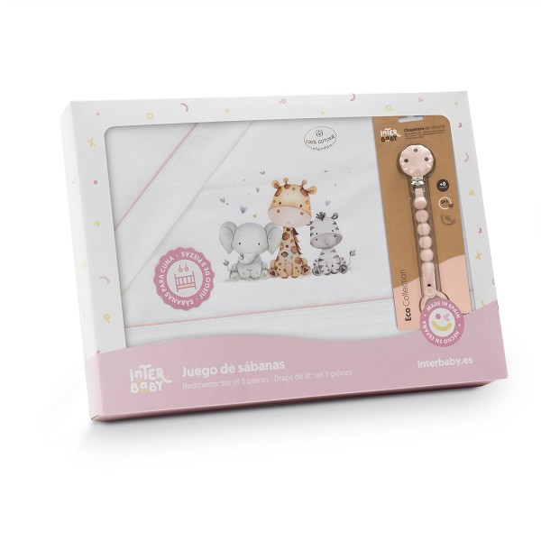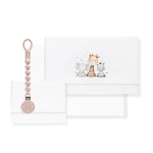 Triptico sábanas algodón cuna bco/rosa