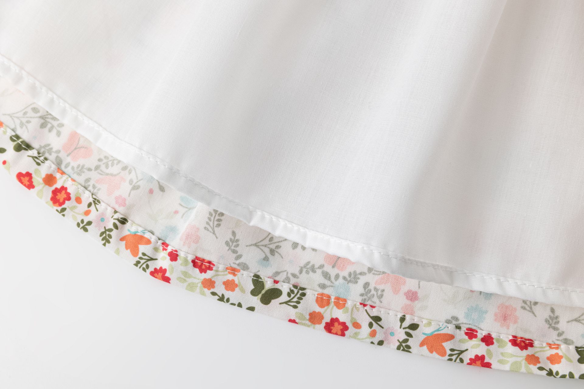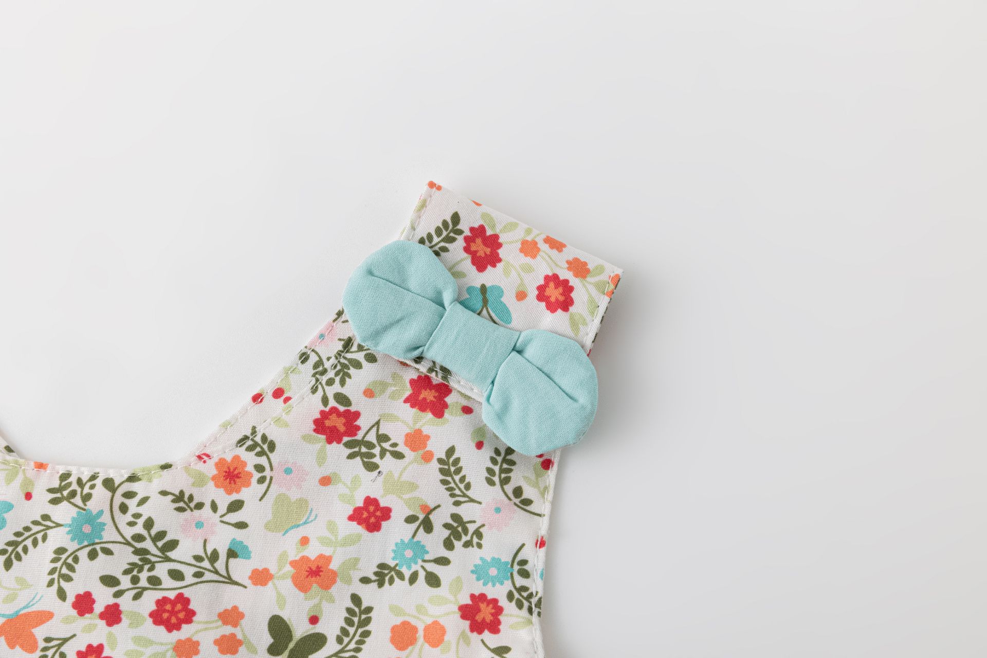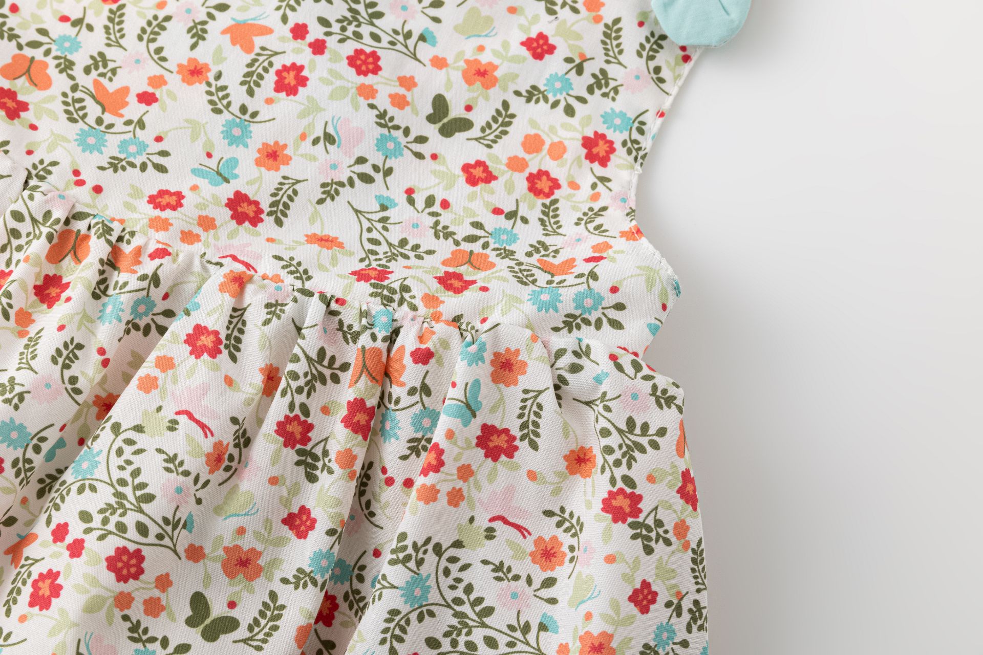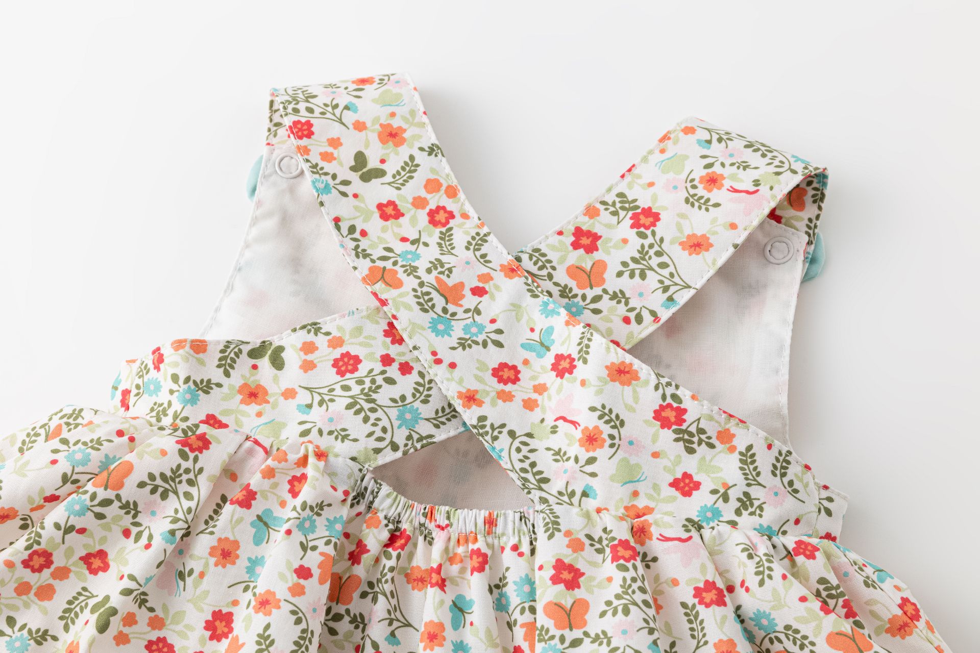 Vestido de tirantes con lazo decorativo en mismo tejido con espalda cruzada. En tejido 100% algodón con estampado de flores.